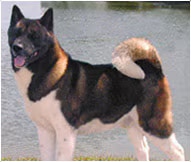 La cola, llena y rizada, es proporcional a su gran cabeza. El macho Akita mide entre 66 y 71 cm y pesa alrededor de 50 kg. La hembra mide entre 61 y 66 cm y pesa alrededor de 36 kg. El pecho y el cuello anchos del Akita sirven como base sólida para su gran cabeza, su rasgo más distintivo. La cabeza ancha y el hocico corto forman un triángulo romo visto desde arriba. El Akita tiene ojos pequeños y orejas erguidas, lo que le da a la raza una expresión muy digna. El cuerpo es musculoso y las patas son rectas y fuertes. La cola es grande y abundante, y se lleva alta, generalmente enroscada sobre el cuerpo. El pelaje del Akita es de corto a mediano y muy denso. Una capa interna gruesa y suave lo hace ideal para climas fríos, aunque se adelgaza considerablemente durante los meses más cálidos. La capa externa, o pelo de protección, es ligeramente más larga y áspera. Algunos akitas tienen el pelo largo y, aunque no son adecuados para exhibiciones, son perros atractivos por sí mismos. Los colores del akita incluyen el blanco, el atigrado y el pinto. El akita blanco no tiene máscara. El pinto tiene un fondo blanco con grandes manchas de color que cubren el cuerpo. La capa interna puede ser de un color diferente al manto externo, pero los colores siempre son claros y vivos. La llamativa apariencia del akita ha contribuido a su constante crecimiento en popularidad.