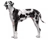 El Gran Danés, también conocido como el Apolo de los perros, es una raza gigante. El danés es de origen alemán, no danés. Se cree que la raza existe desde hace más de 400 años. Los grandes daneses descienden de perros parecidos a los mastines, criados por la nobleza alemana para proteger fincas y cazar jabalíes. En el siglo XVIII, los grandes daneses eran prestigiosos guardianes de fincas y carruajes. También eran populares entre la clase alta como deporte, ya que pocos perros podían abatir un jabalí. Los grandes daneses que se parecían más a los que conocemos hoy en día se desarrollaron en el siglo XIX. En 1880, los alemanes prohibieron el nombre "Gran Danés" y llamaron a la raza "Deutsche Dogge", que significa mastín alemán. Sin embargo, la raza continúa llamándose Gran Danés en los países de habla inglesa.