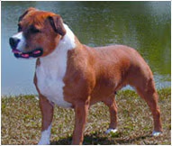 Este perro es inconfundible. El Staffordshire Bull Terrier tiene un carácter rudo.